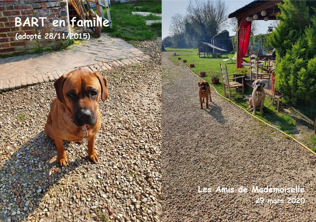 L'histoire de BART : Suite à une annonce urgente sur Leboncoin (désactivée très rapidement mais j'avais fait une capture) d'une maman Boxer/Malinois et ses 4 chiots qui étaient donnés... de nombreux coups de téléphone à la personne pour la convaincre de les confier tous les 5 à une association....Mais 3 chiots avaient déjà été donnés... La personne ne savait même pas si la chienne était identifiée et évidemment elle n'avait pas de carnet de santé. J'ai découvert son état de maigreur à son arrivée chez LADM. Son chiot se porte bien et je l'ai appelé BART.