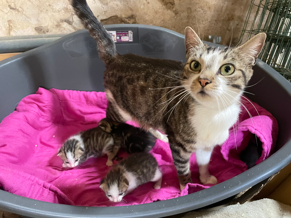 BLUE est réservée et rejoindra sa famille après sa stérilisation et le sevrage de ses 3 chatons.