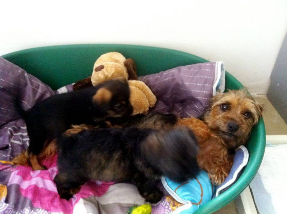 L'histoire de Cheyenne : elle a été trouvée avec ses 2 bébés de 2 mois (Haity et Heidi) et a fait son temps dans une fourrière du 62 (elle y a passé 15 jours !). Elle est sortie sous l'association LADM le 13 août 2013.
