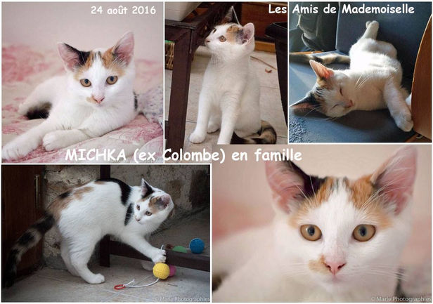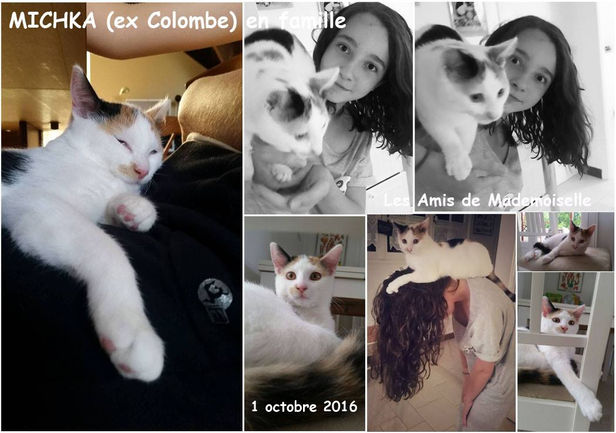 COLOMBE a été adoptée le 12 août 2016 par Marie-Laure, Frédéric et leurs enfants et a été rebaptisée MICHKA.