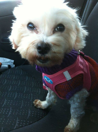 Up date du 1 septembre 2016. Maggie a eu une chirurgie de la queue mi août, une caudectomie pour raisons médicales. Le véto a aussi nettoyé et détartré les dents qui lui restent. Elle va très bien.