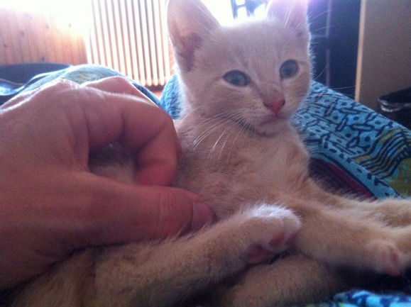 L'histoire de MANGO : Trouvé dans un jardin, avec son petit frère, qui lui a malheureusement été écrasé par une voiture. Il est arrivé le 27 juillet 2013 chez LADM.