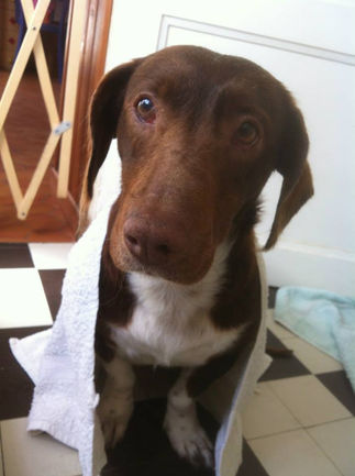 Le jour de son arrivée (28 avril 2015) chez LADM, elle a vu le véto à 17h et a été opérée le soir même en urgence (elle avait 40 de fièvre et une métrite aiguë et un début de péritonite). 29 avril, MATILDA est très fatiguée, elle est en hypothermie et refuse de manger, elle est sous perfusion et sous surveillance constante. 30 avril, Matilda est sortie de la clinique vétérinaire. 7 mai, RDV véto pour le retrait des fils. La mauvaise nouvelle : il va falloir l'opérer d'une hernie inguinale à droite + retirer 3 petits adénomes mammaires. RDV est pris pour le 18 mai (il faut laisser minimum 3 semaines entre 2 opérations et MATILDA vient de subir une ovario-hystérectomie) ...
