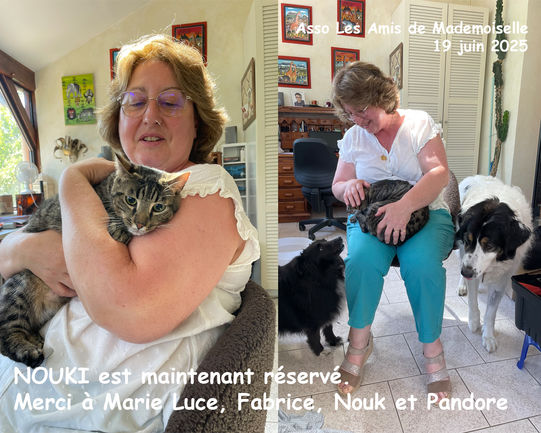 Nouki a été adopté le 22 juin 2025 par Marie Luce et Fabrice. Il s'appellera Kooky.