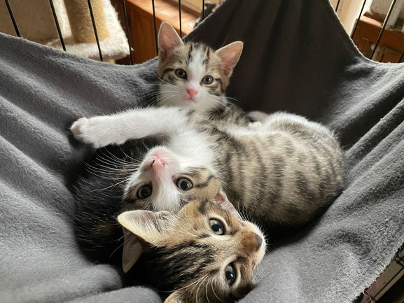 L'histoire de TABBY : Sauvetage. Il est arrivé le 4 août 2024 chez LADM avec sa maman BLUE et sa fratrie (3 chatons).