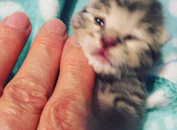 L'histoire de IGOR : Le 18 août j'avais rendez-vous chez le vétérinaire. On venait de leur déposer ce chaton, un petit mâle d'environ 10/12 jours (très proche d'ouvrir les yeux), qui avait été trouvé dans une poubelle à Epernon (il était trempé pauvre bébé car il a plu ce jour là) et amené au cabinet vétérinaire. Ils m'ont demandé si je pouvais le prendre en charge. Comment dire non ?